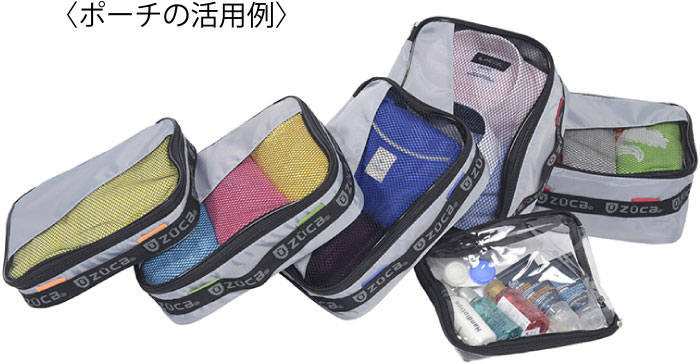 ZÜCA FLYER Travelをすっぽり覆うカバーで、バッグと同カラーのものが付属。かぶせたままハンドルを引き出せます。バッグを傷つけにくくするほか、混み合ったときに周りの人への配慮に役立ちます。